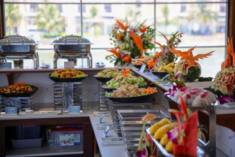 11:30 – 13:00: Having buffet lunch (*Set menu will be served for under 30 guests); surcharge for lobster only 450,000 VND (1⁄2 lobster) and booked in advanced.